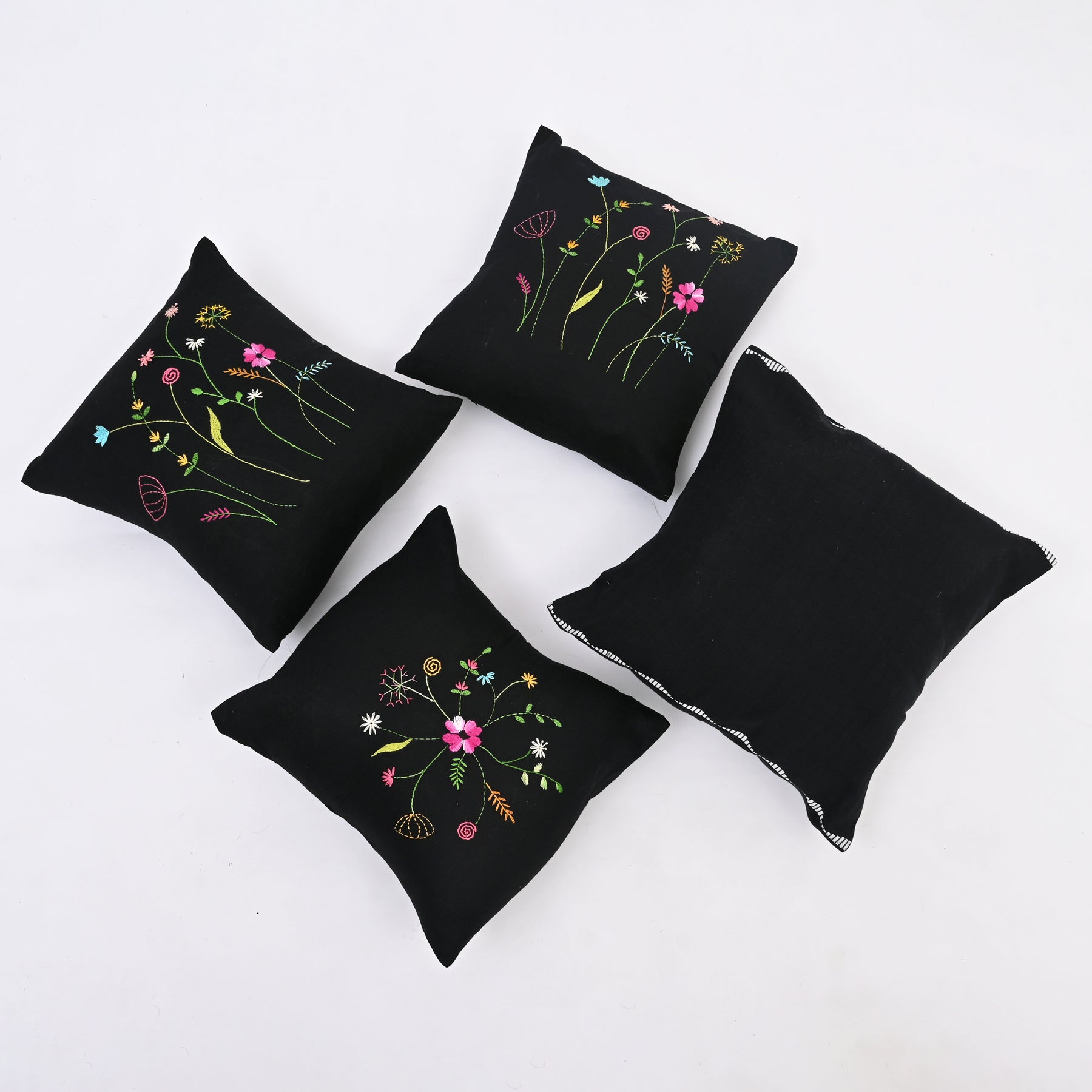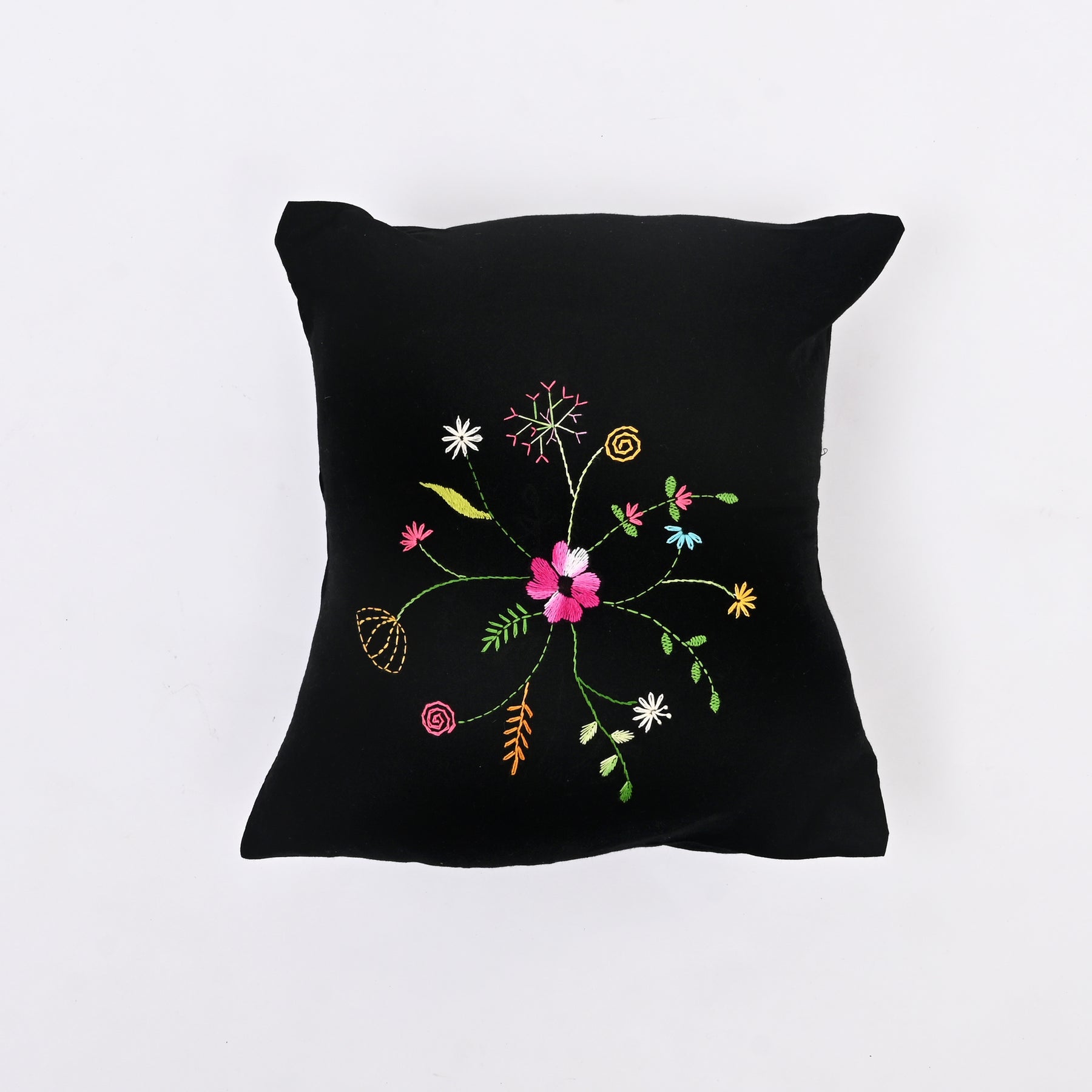 Make a bold and beautiful statement with this black cotton cushion cover, adorned with vibrant multicolour embroidery. The intricate hand-stitched patterns add texture, charm, and cultural flair to your living space. Crafted from soft and breathable cotton, it blends comfort with artisan appeal.