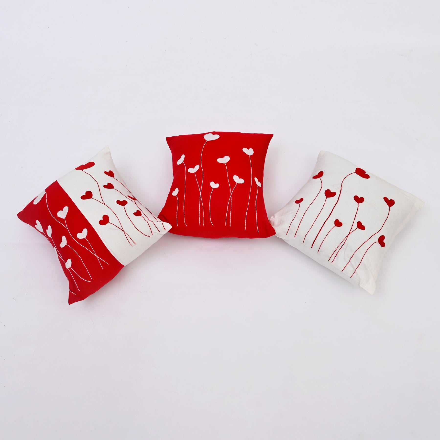 Add a touch of warmth and handcrafted beauty to your space with this square cushion cover, featuring charming heart-shaped appliqué work. Thoughtfully designed with a striking color combination, the appliqué adds depth, character, and a playful elegance to the overall look.