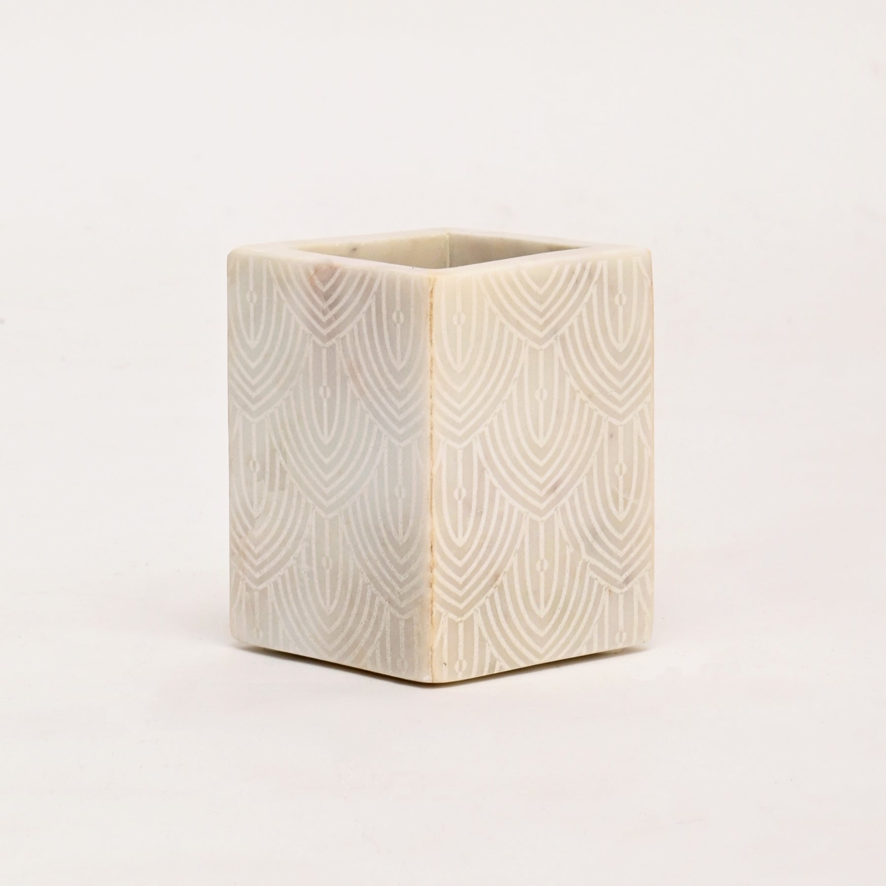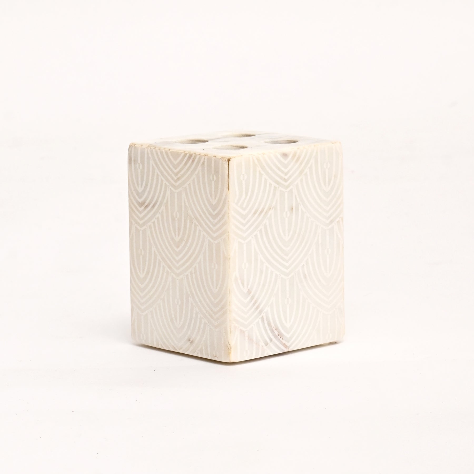 Elevate your bathroom vanity with our luxurious Handcrafted Marble Bathroom Set. This four-piece collection is carved.
