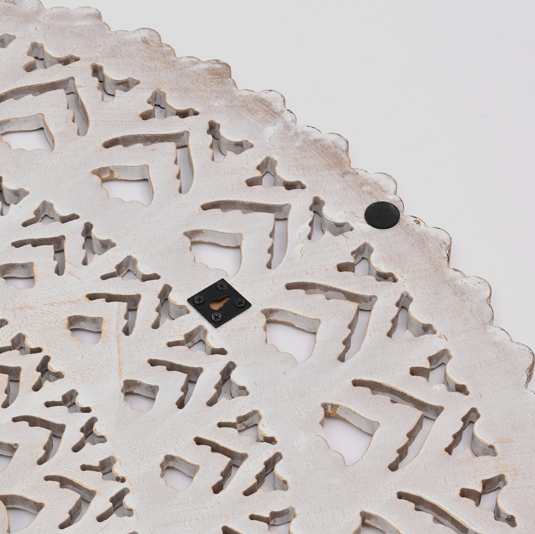 Add a grand and artistic touch to your interiors with this stunning Wooden Floral Hand Carved Mandala Round Wall Decor. Expertly crafted from premium Wood Material, this wall décor features intricate floral mandala hand carving that reflects fine craftsmanship and timeless beauty. The elegant Color and detailed design make it a perfect statement piece for living rooms, bedrooms, halls, or entryways. The impressive Size of this wall décor is 48", making it ideal to create a bold focal point on any wall. This décor piece not only enhances your space but also adds depth, warmth, and a luxurious handcrafted feel to your home.