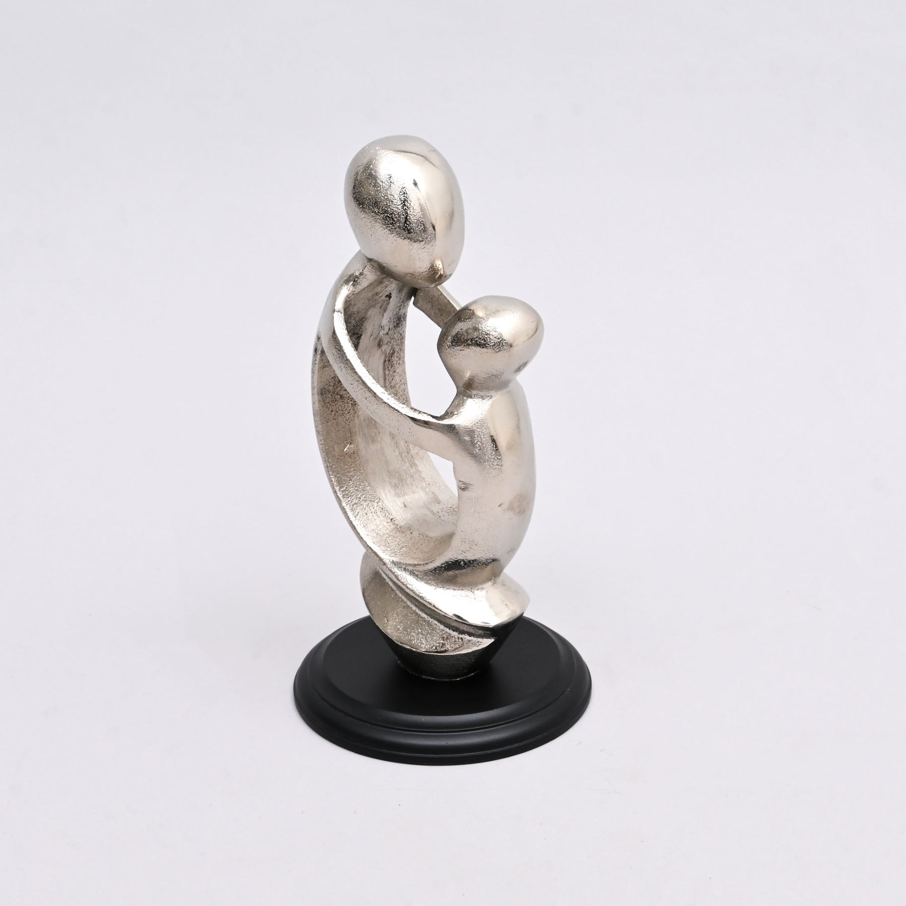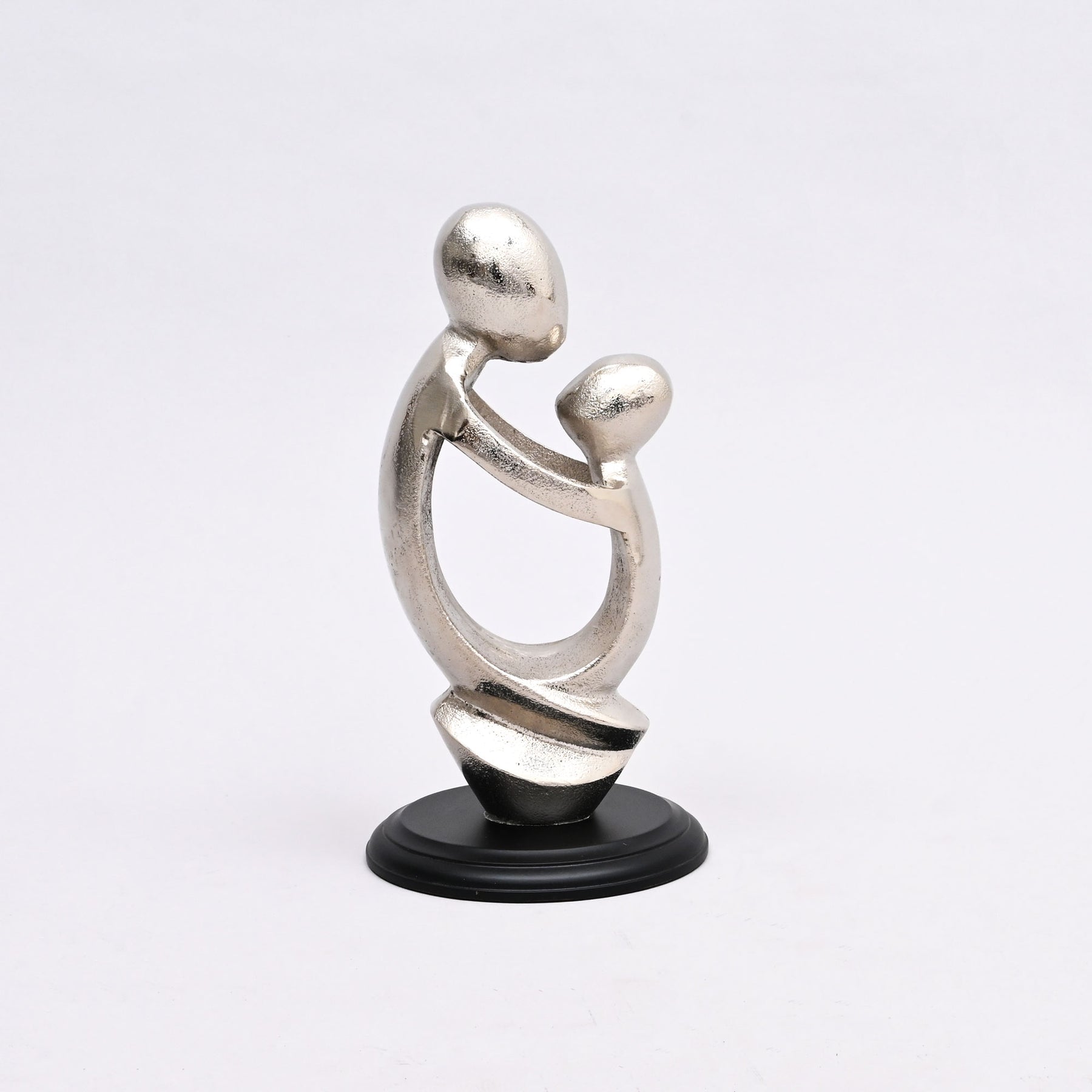 Celebrate connection and emotion with the Embrace of Love Figurine, a contemporary sculpture that beautifully captures the essence of unity and affection. Crafted from durable aluminum and finished in a sleek nickel tone, the abstract design depicts two forms entwined in a tender embrace, making it a striking symbol of love and togetherness. Mounted on a contrasting black base for stability and modern elegance, this piece is perfect for displaying on mantels, shelves, or as a heartfelt gift for weddings, anniversaries, or special occasions.