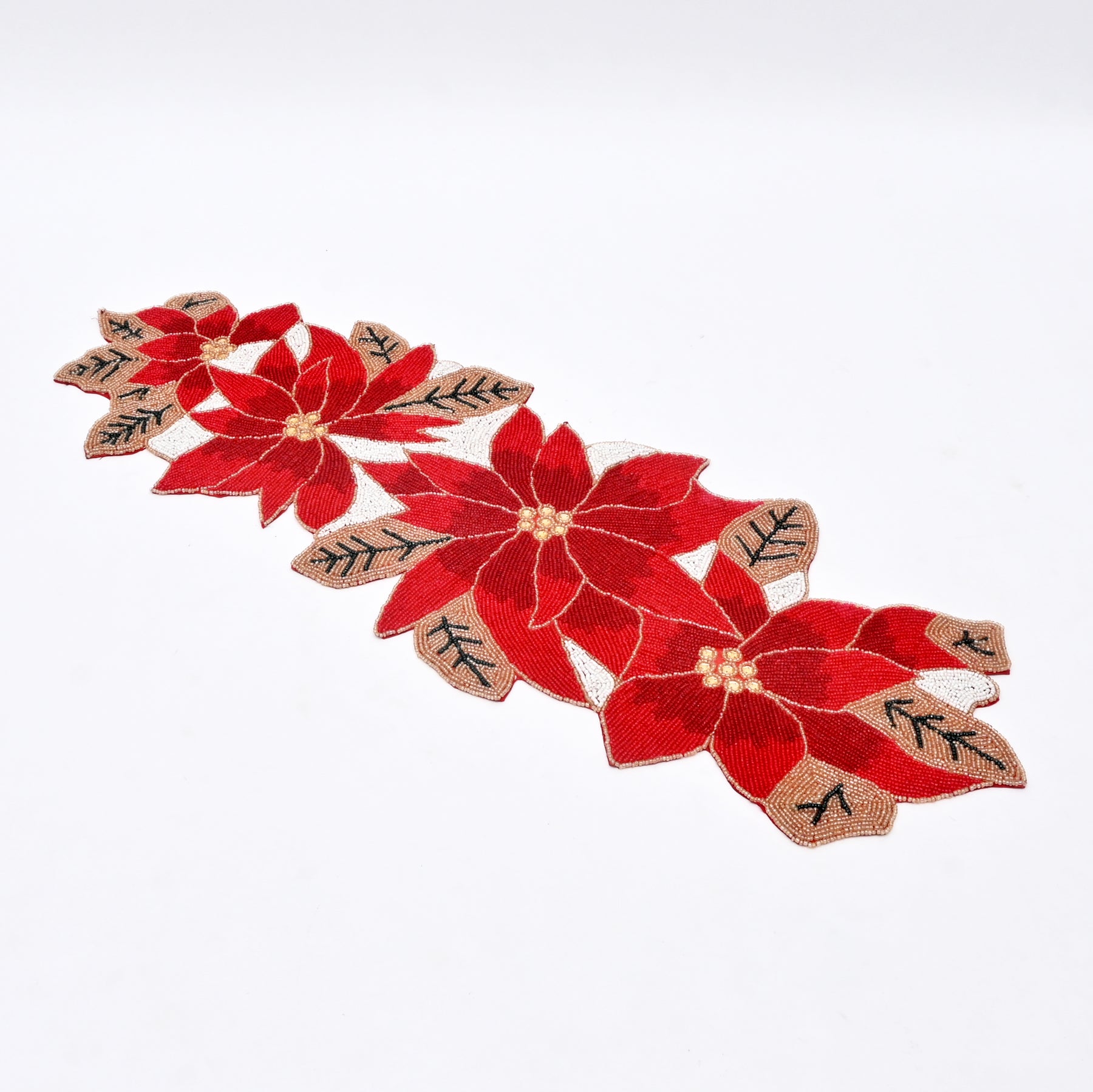 Add a touch of luxury and festive charm to your dining décor with this Hard Beaded Embroidered Table Runner. Expertly crafted with fully hand-applied beadwork, this table accent features an elegant floral pattern that instantly enhances any dining table, console, or sideboard. The rich bead detailing creates a beautiful textured surface that reflects light and adds depth, making it perfect for festive settings, special occasions, and statement home décor.