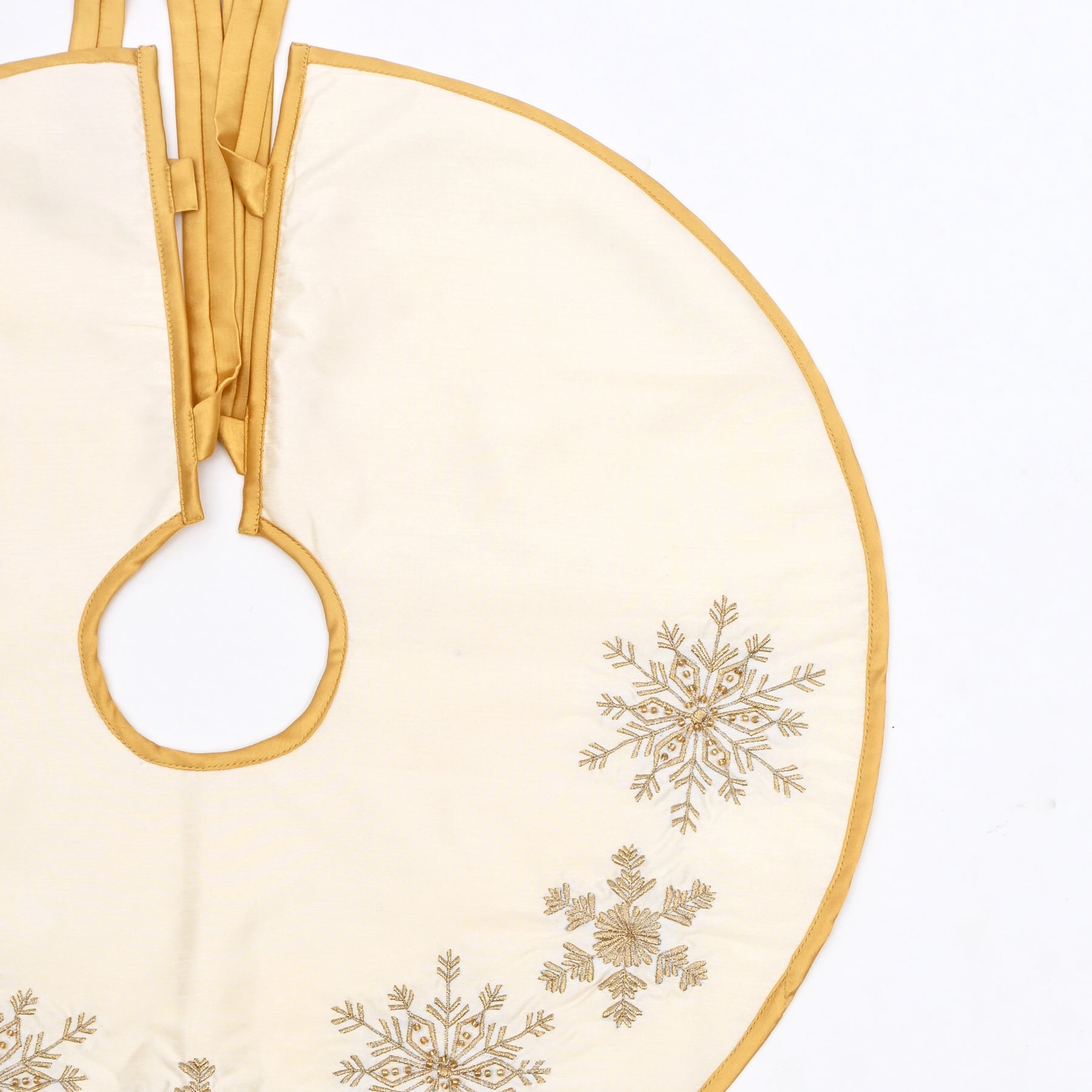 Add a graceful festive touch to your holiday décor with this beautifully crafted white Christmas tree skirt. Made from durable polyester and adorned with delicate embroidery and elegant beadwork, this tree skirt enhances the base of your Christmas tree with a soft, luxurious look. Its classic white color complements all ornament themes, from traditional red and green to modern metallics. Perfect for hiding tree stands while creating a refined, celebratory atmosphere in your living space.