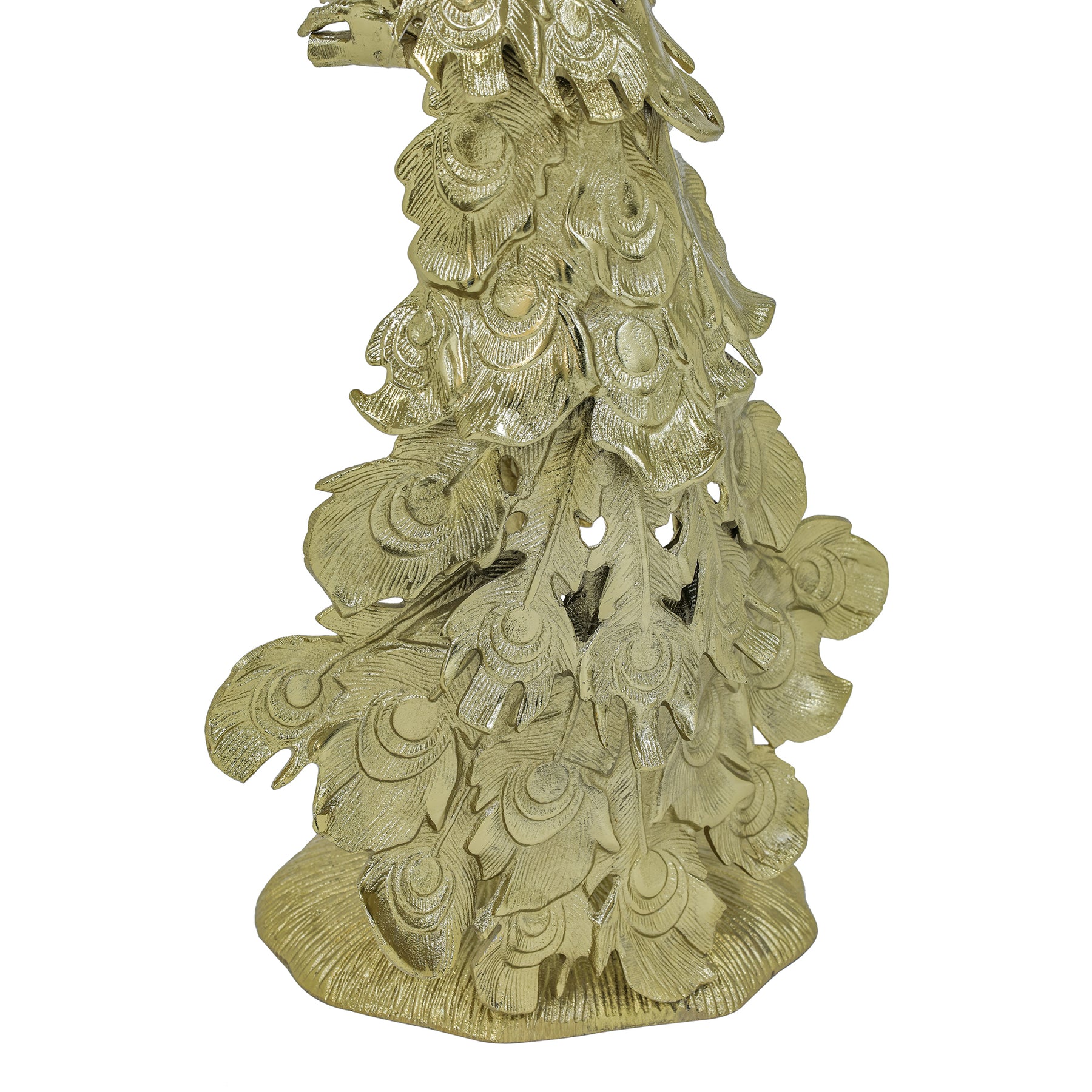 Design: Intricate, peacock-inspired sculpture with a white marble top