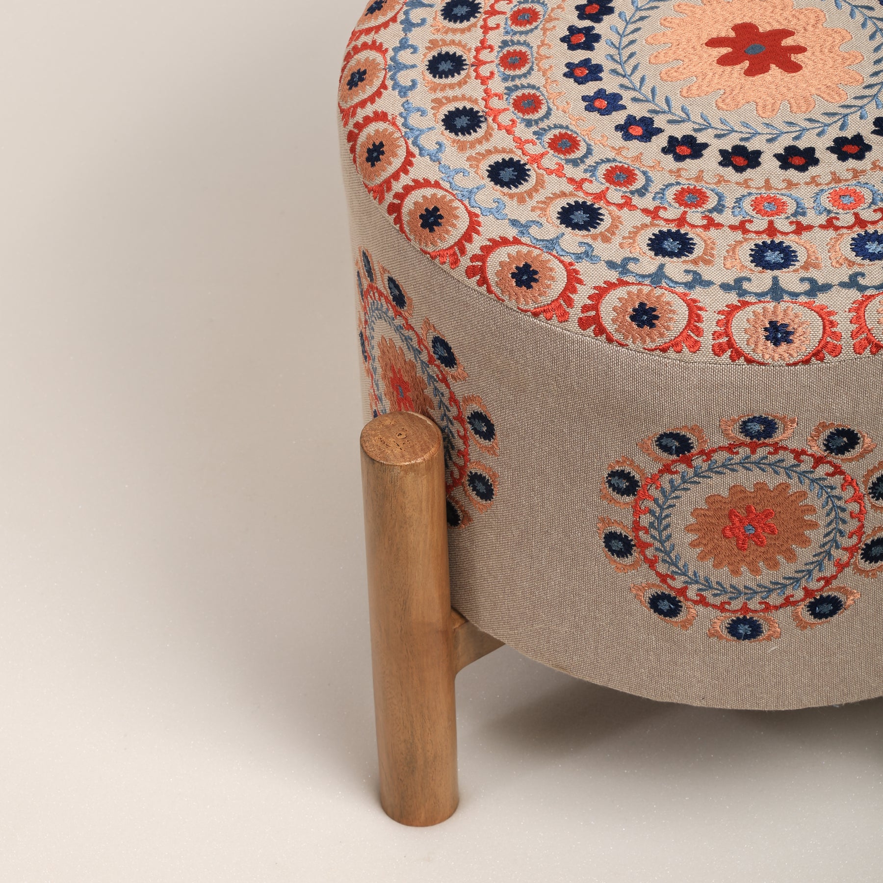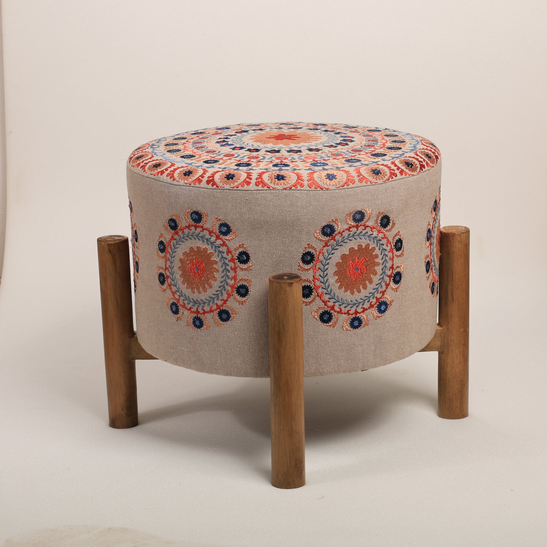 Material: Cotton fabric with mandala embroidery & Wooden legs