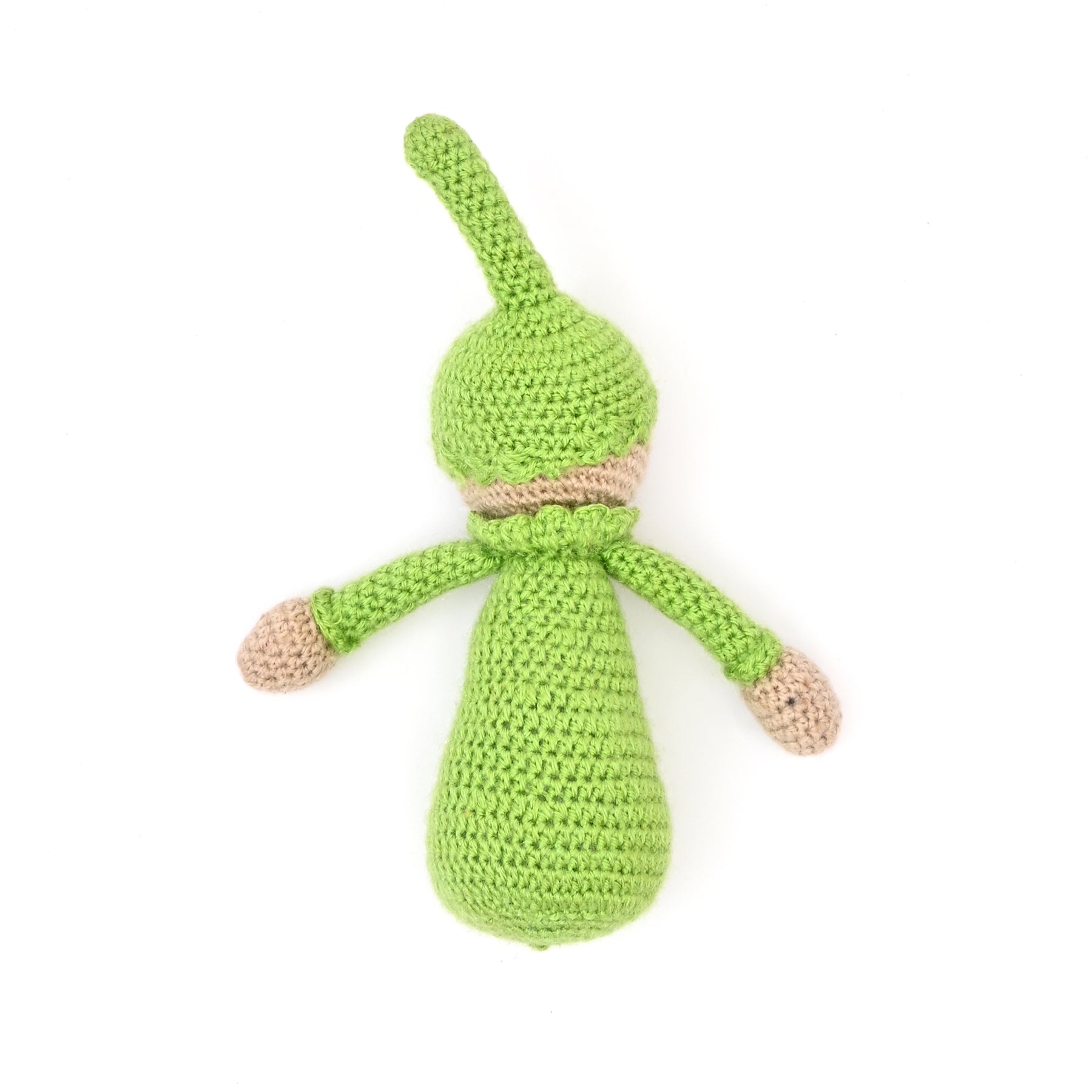 Bring home a touch of magical charm with our delightful, hand-crocheted Tikki doll! Masterfully crafted from a blend of soft woolen and synthetic cotton, this adorable light green companion is perfect for imaginative play or as a comforting snuggle buddy. Measuring a generous 11" x 4", it's just the right size for little hands to hold and cherish. Each doll boasts unique, handcrafted details, ensuring a one-of-a-kind treasure. Its durable yet gentle construction makes it ideal for everyday adventures and countless cuddles. A wonderful gift for birthdays, holidays, or just because - spark joy and creativity with this enchanting Tikki doll!