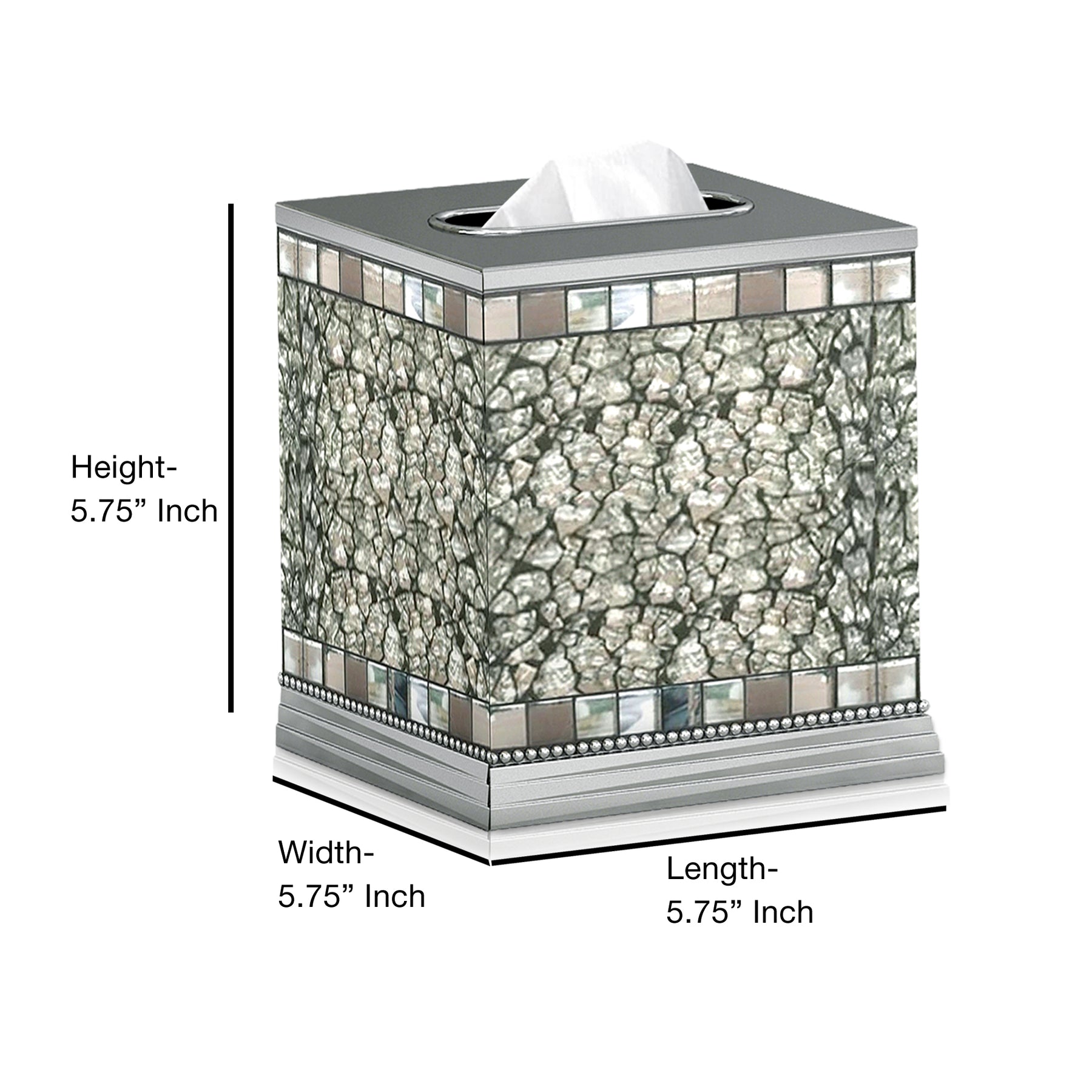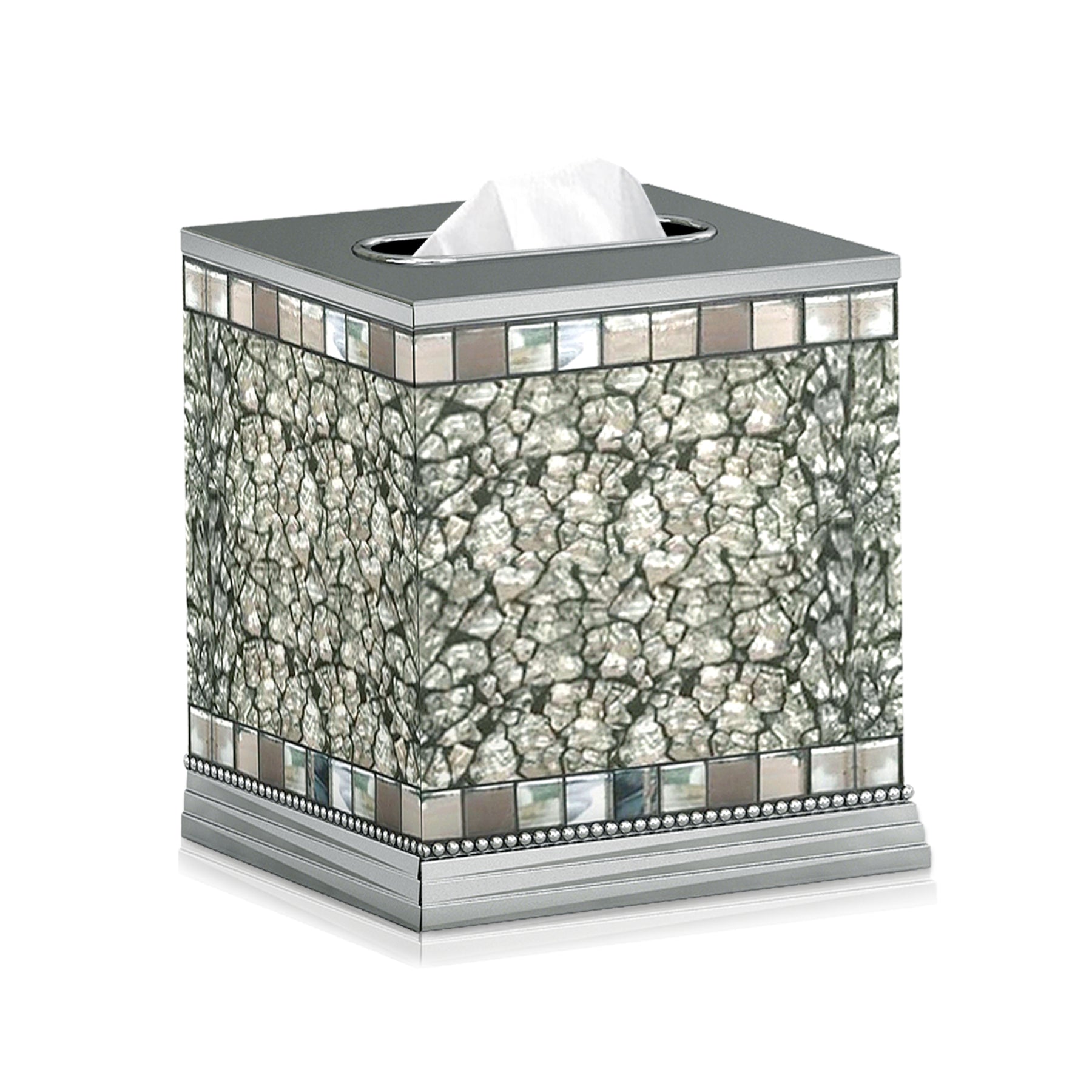 Tissue Box | Stainless Steel Square Facial Tissue Box Holder for Bathroom Vanity Countertops,Bedroom Dressers | Glass Mosaic Ice Finish