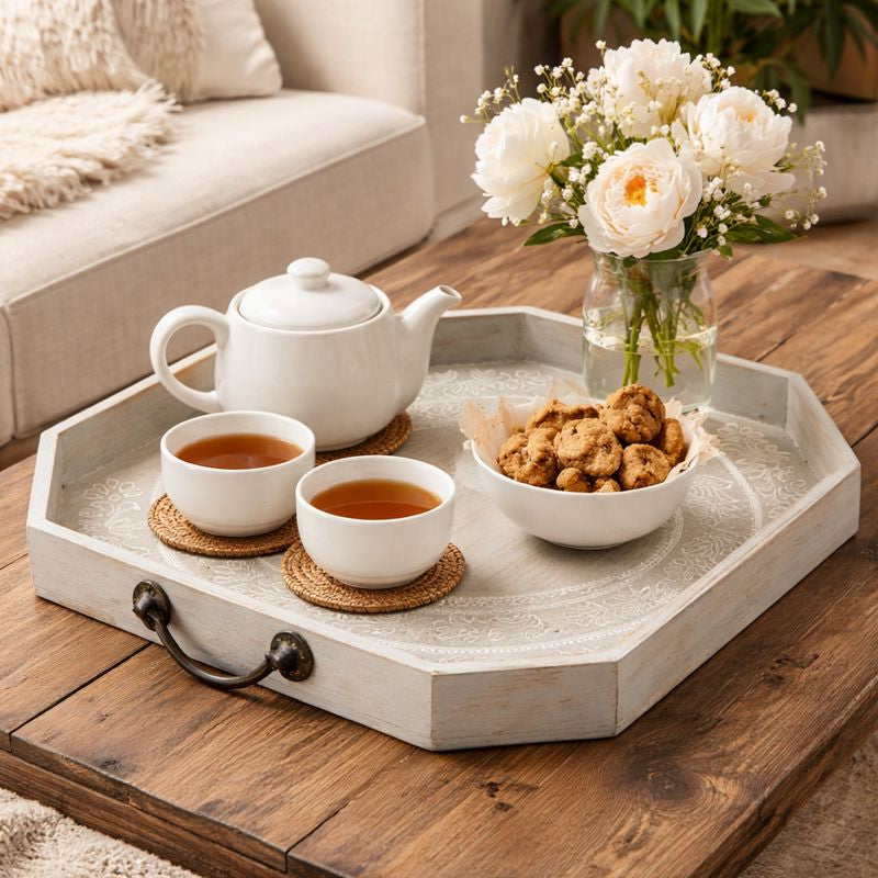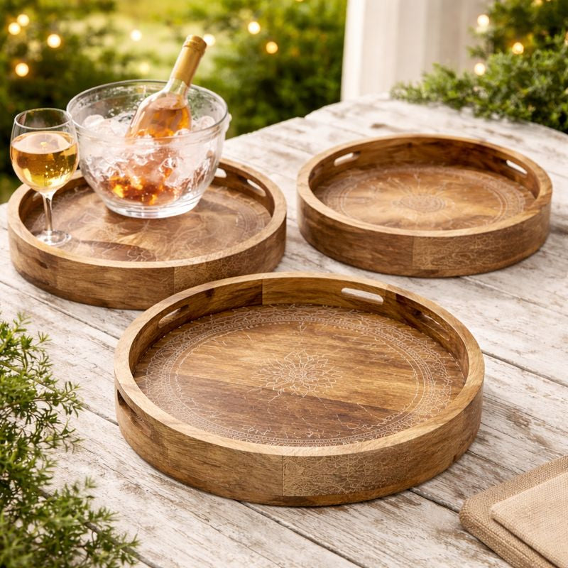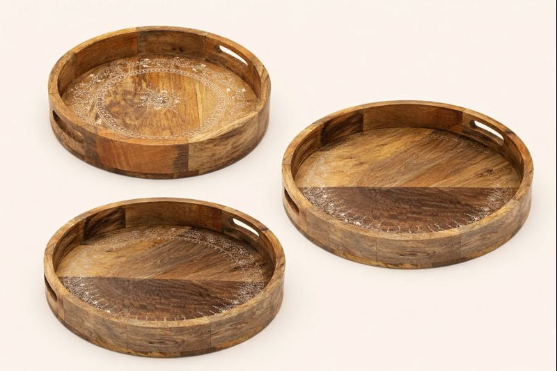 Our wood serving tray wholesale offerings include a variety of finishes and designs to suit different aesthetics, from modern minimalism to traditional Indian craftsmanship. We also offer beautifully grained acacia wood trays wholesale, ideal for those looking to stock sustainable, artisanal pieces. Whether you're looking for wholesale wood trays for organizing home essentials or bulk wood serving trays for stylish food presentation, our trays combine durability with design appeal.